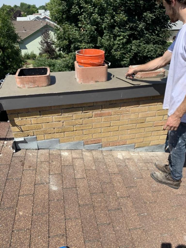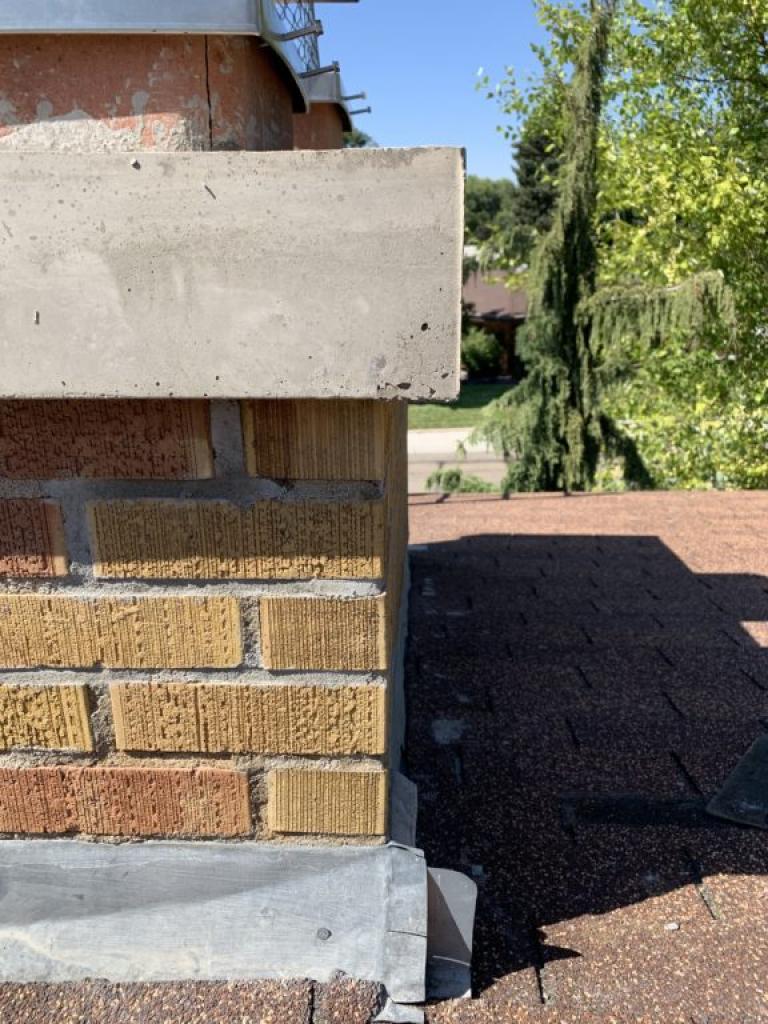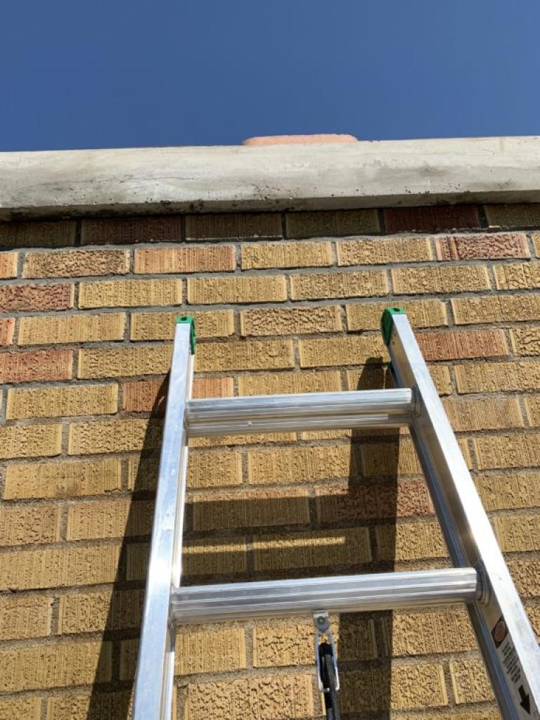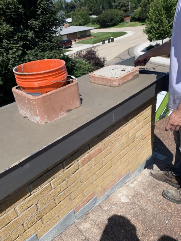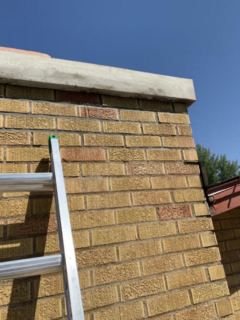 A concrete crown with overhanging edge and rebar will be around for a long time. We modeled these crowns after midwest chimneys with the same style of crown that are 100+ years old and counting. Crown pour and Tuckpointing projects typically take a day or less.