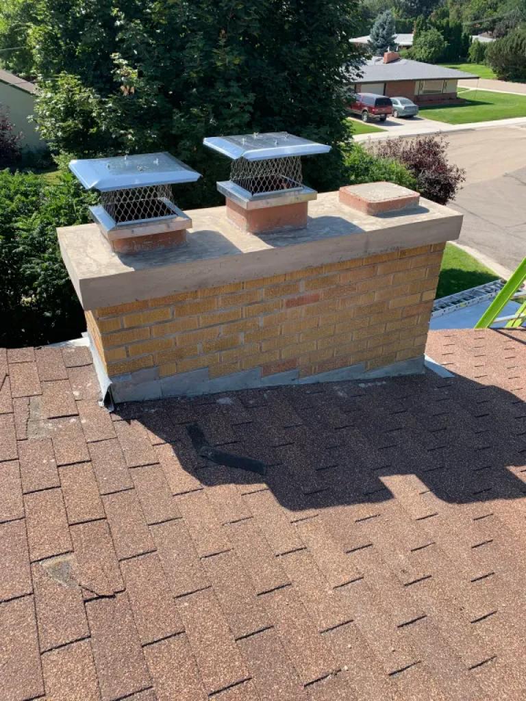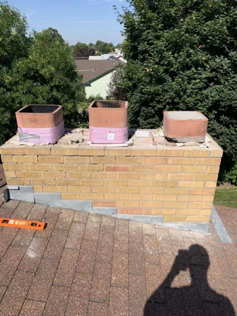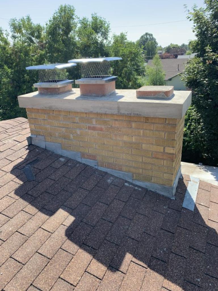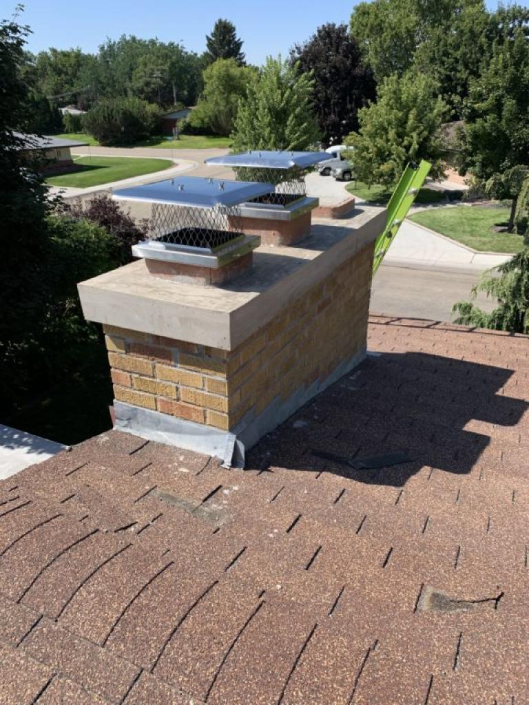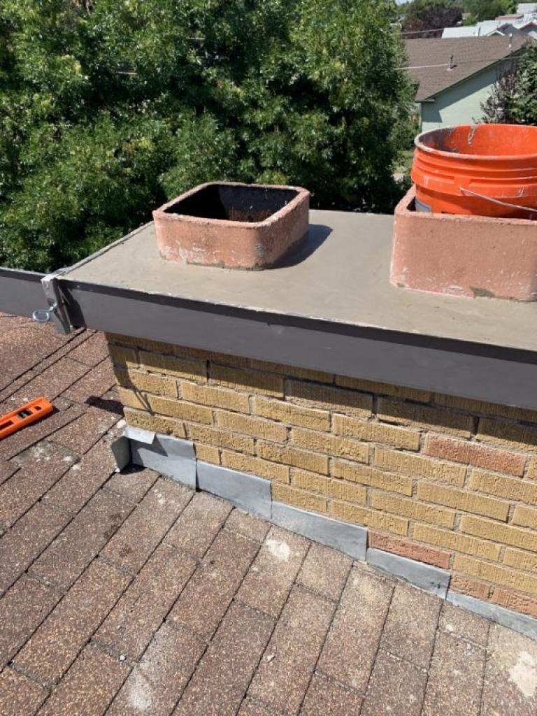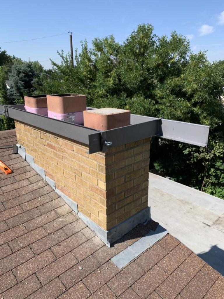 A concrete crown with overhanging edge and rebar will be around for a long time. We modeled these crowns after midwest chimneys with the same style of crown that are 100+ years old and counting. Crown pour and Tuckpointing projects typically take a day or less.
