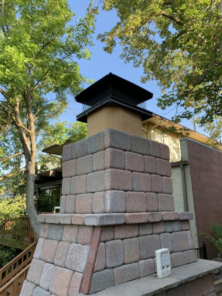 Our customer was concerned with sparks flying out of their outdoor chimney flue when they used their fireplace. When we showed up, we saw the need for some additional height as well as a spark guard chimney cap.